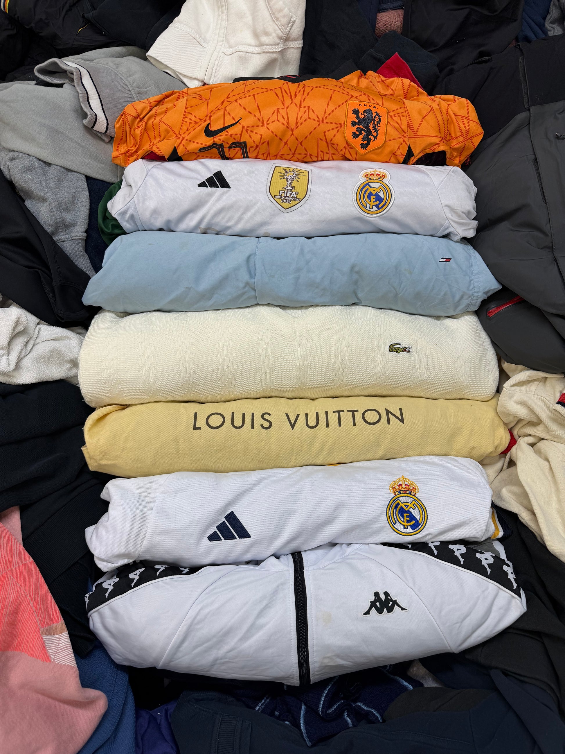 En cada lote encontrarás una selección variada de prendas, con un 90% de artículos en excelente estado (Grado A). La mezcla incluye tanto ropa vintage como piezas modernas, abarcando tallas desde la S hasta la XL.