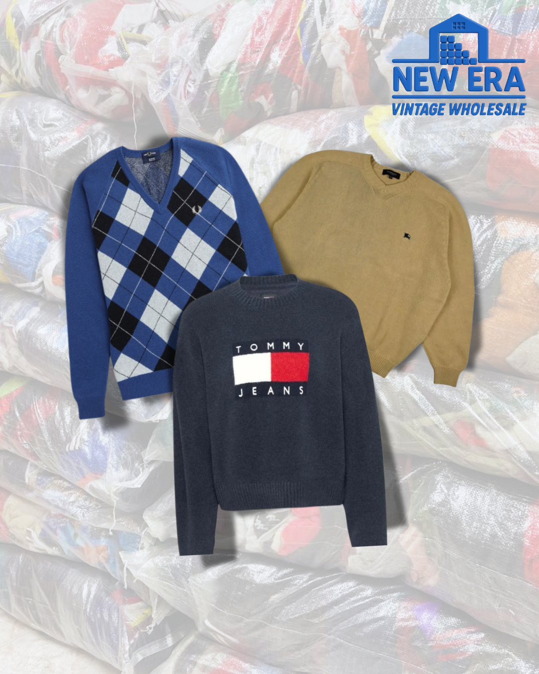 En esta sección podrás encontrar jerséis de marca de todos los estilos, tanto modernos como vintage. El 60% de este lote incluye jerséis de marca estilo vintage, y el otro 40% jerséis de marca más modernos.